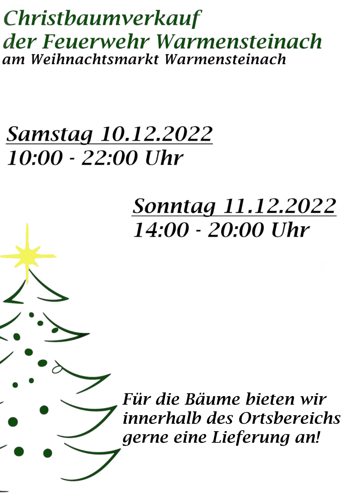 Zum Weihnachtsmarkt findet unser alljährlicher Christbaumverkauf statt.